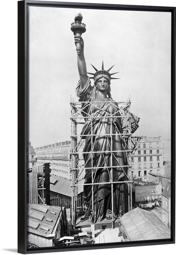 <p>The Statue of Liberty while it was being constructed in Paris, France, under the direction of an immigrant Norwegian civil engineer Joachim Goschen Giaever. It was then transported to New York in disassembled form in crates aboard a French steamer Isere and was welcomed by two hundred thousand people lining the docks.</p>