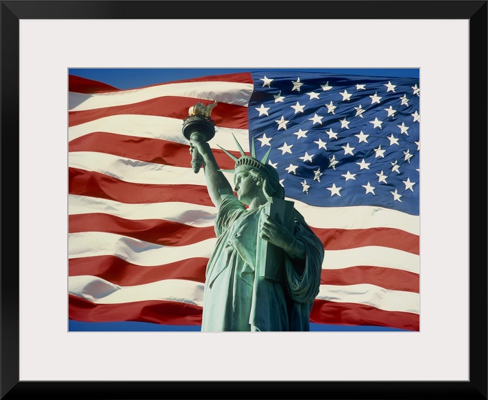 <p>The Statue of Liberty with the Stars & Stripes, New York, United States of America, North America</p>