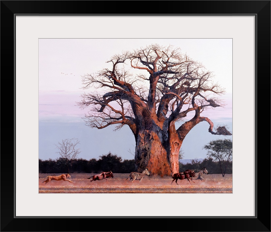 Art Contemporary Art Mark Kelso Landscapes Trees Painting Wildlife Lion Zebra