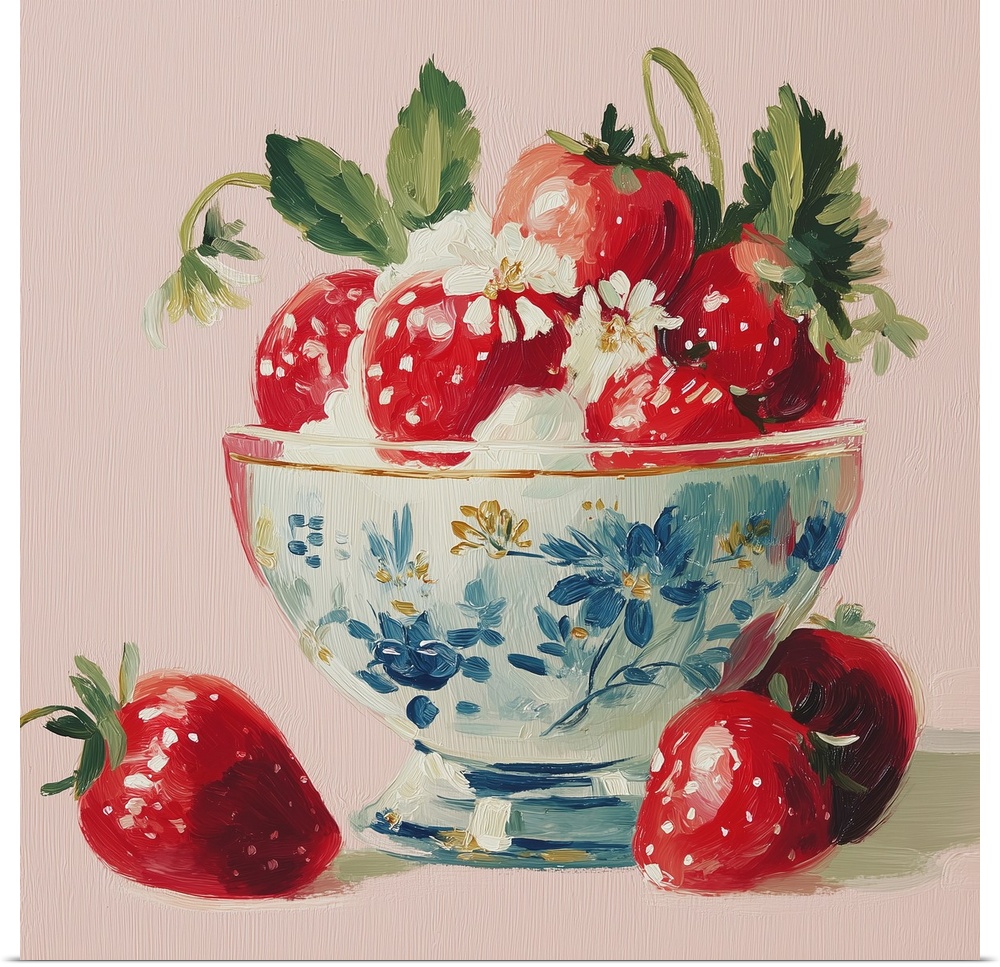 Art Kitchen Wall Art Contemporary Art Florals Food and Drink Food Fruit Strawberry Paula Freeman Painting Red Wall Art Still Life