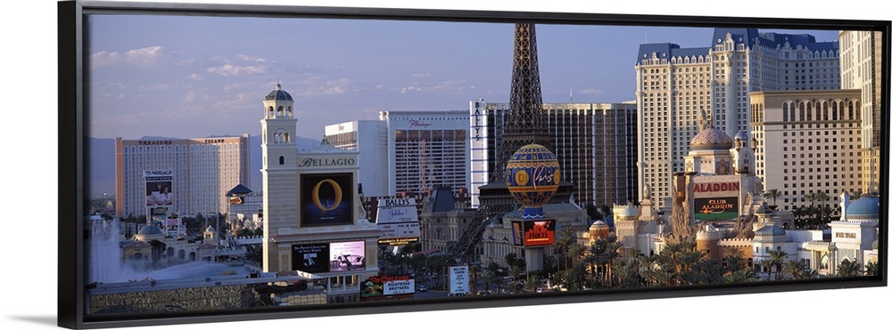 <p>Panoramic photograph on a large canvas of the Las Vegas strip during the day, including the Bellagio, Paris and Aladdin's.</p>