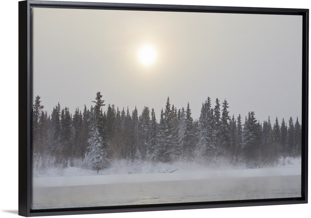 <p>The sun glowing through thick clouds in subzero temperatures along the Yukon River.</p>