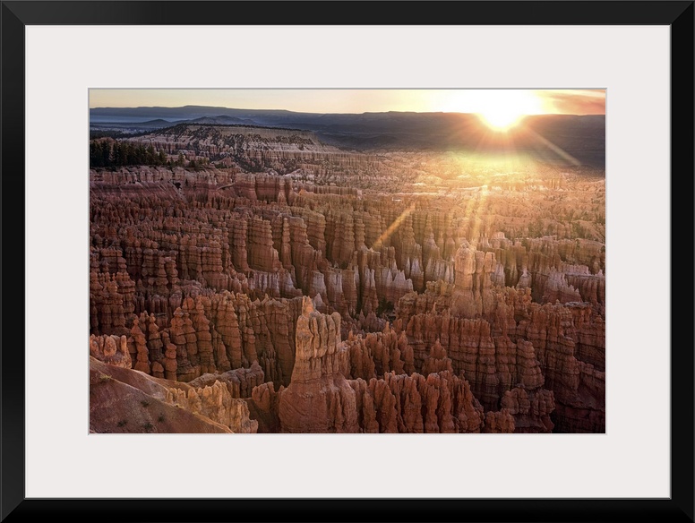 <p>Beams of sunlight on the sedimentary rock formations called hoodoos in Bryce Canyon Amphitheater, Bryce Canyon National Park, Utah.</p>