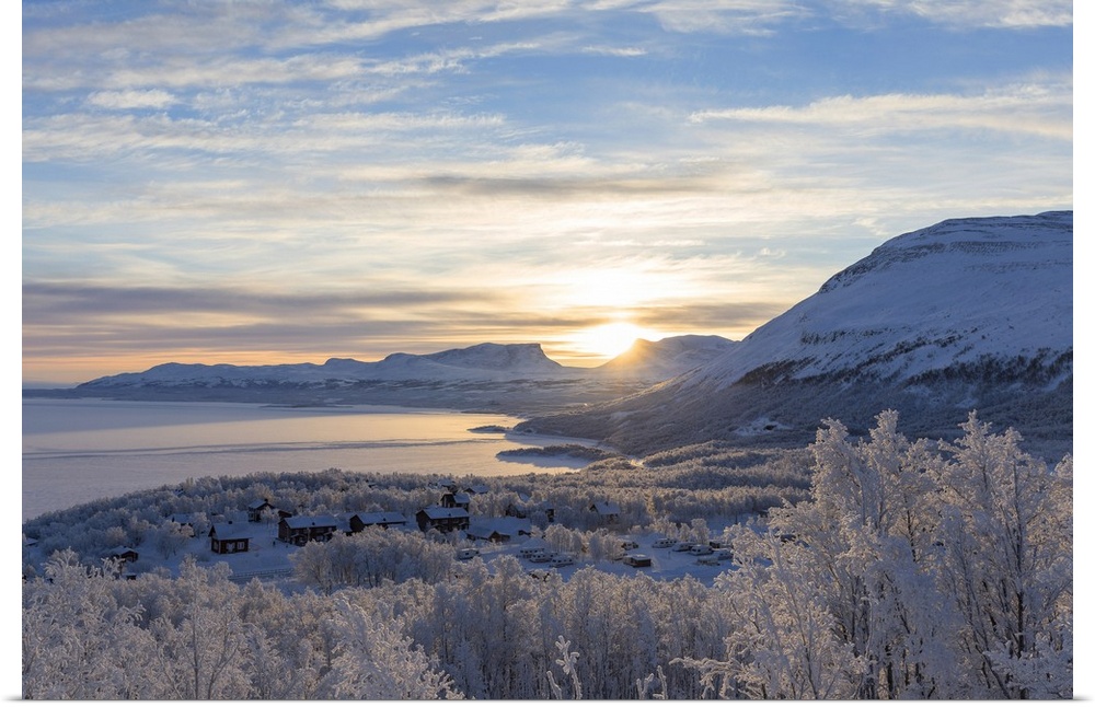 <p>The sun rise over Lapland Door. Bjorkliden, Norbottens Ian, Sweden,Europe</p>