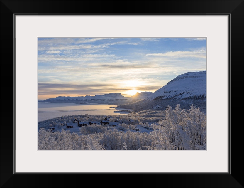 <p>The sun rise over Lapland Door. Bjorkliden, Norbottens Ian, Sweden,Europe</p>