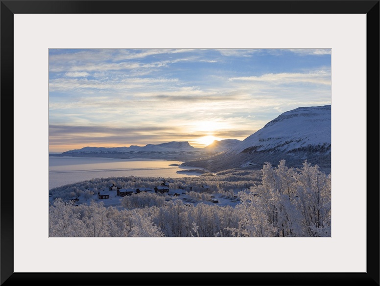 <p>The sun rise over Lapland Door. Bjorkliden, Norbottens Ian, Sweden,Europe</p>