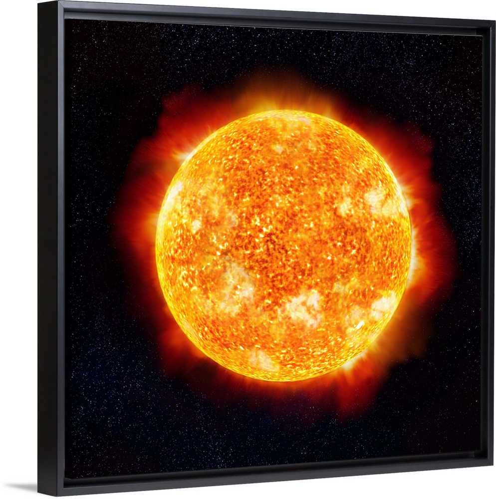 <p>The Sun showing solar flares against a star background. Close-up</p>