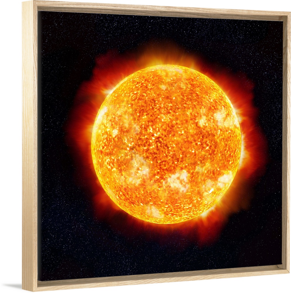 <p>The Sun showing solar flares against a star background. Close-up</p>