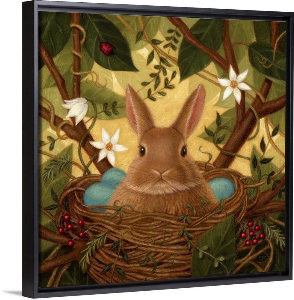 Art Contemporary Art Green Wall Art Gina Matarazzo Painting Surrealism Wildlife Rabbit