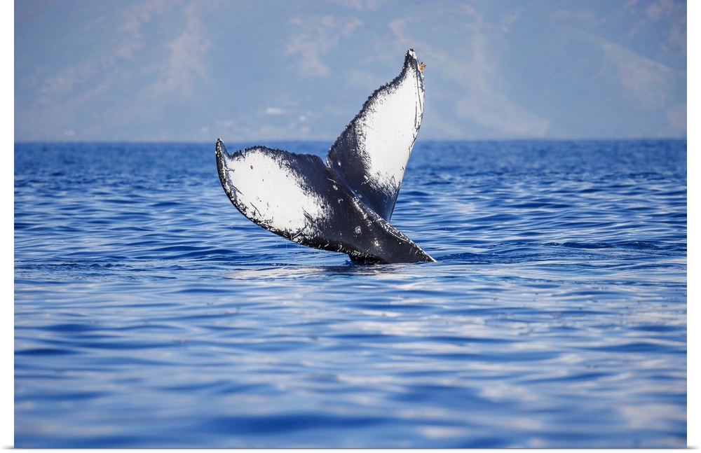 <p>The tail of a humpback whale (megaptera novaeangliae) seen off the coast of Molokai, Hawaii, united states of America.</p>