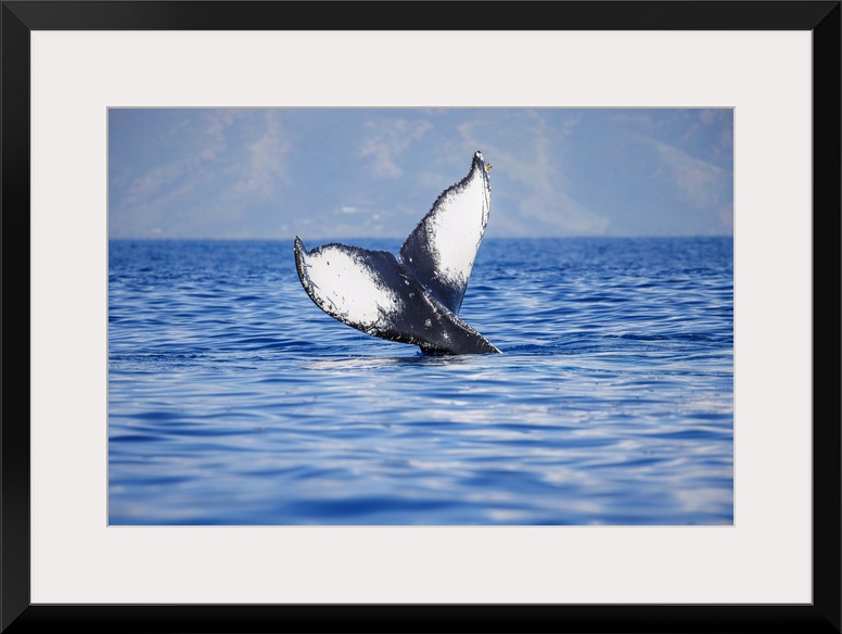 <p>The tail of a humpback whale (megaptera novaeangliae) seen off the coast of Molokai, Hawaii, united states of America.</p>