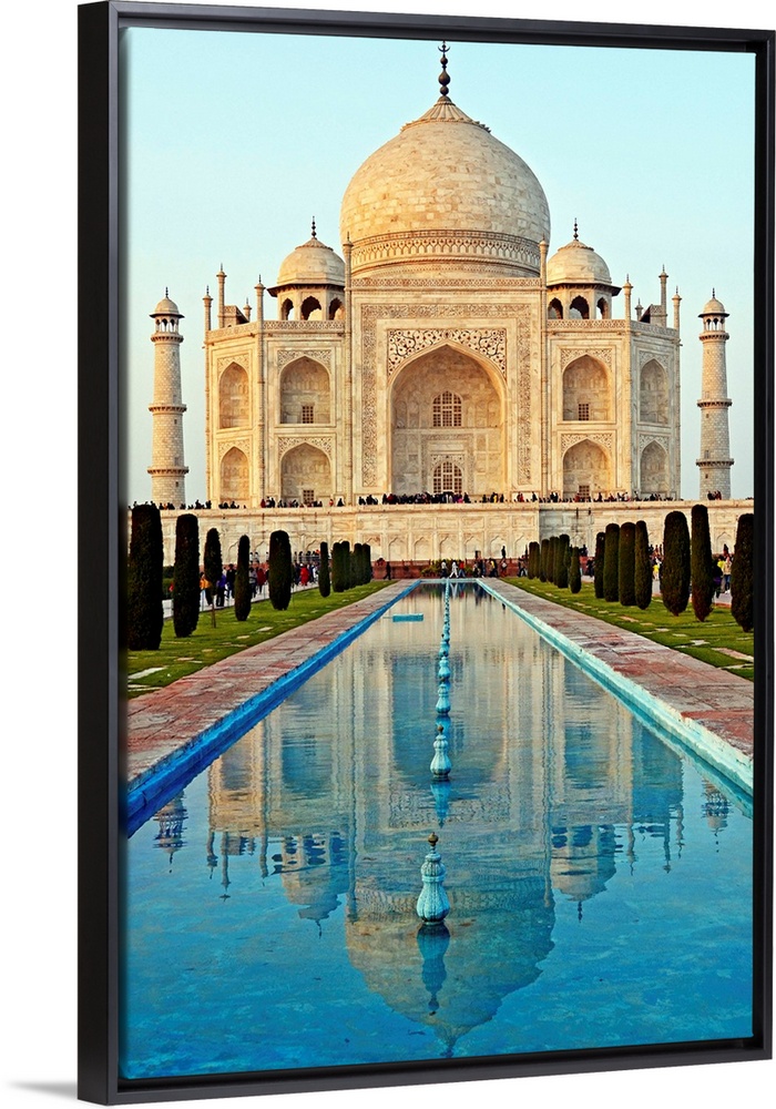 <p>One of the seven wonders of the world is the majestic tomb of Mumtaz Mahal buit by Shajahan. It's a cenotaph of white marble so splendid it attracted the eyes and hearts of people across the globe. The cenotaph is surrounded by water bodies. Here the cenotaph and its reflection in the water is captured together in a vertical frame</p>