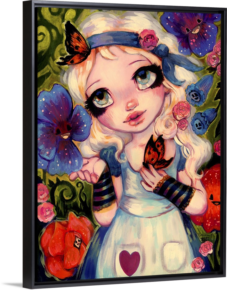 <p>Fantasy painting of a woman in a garden of magical flowers.</p>