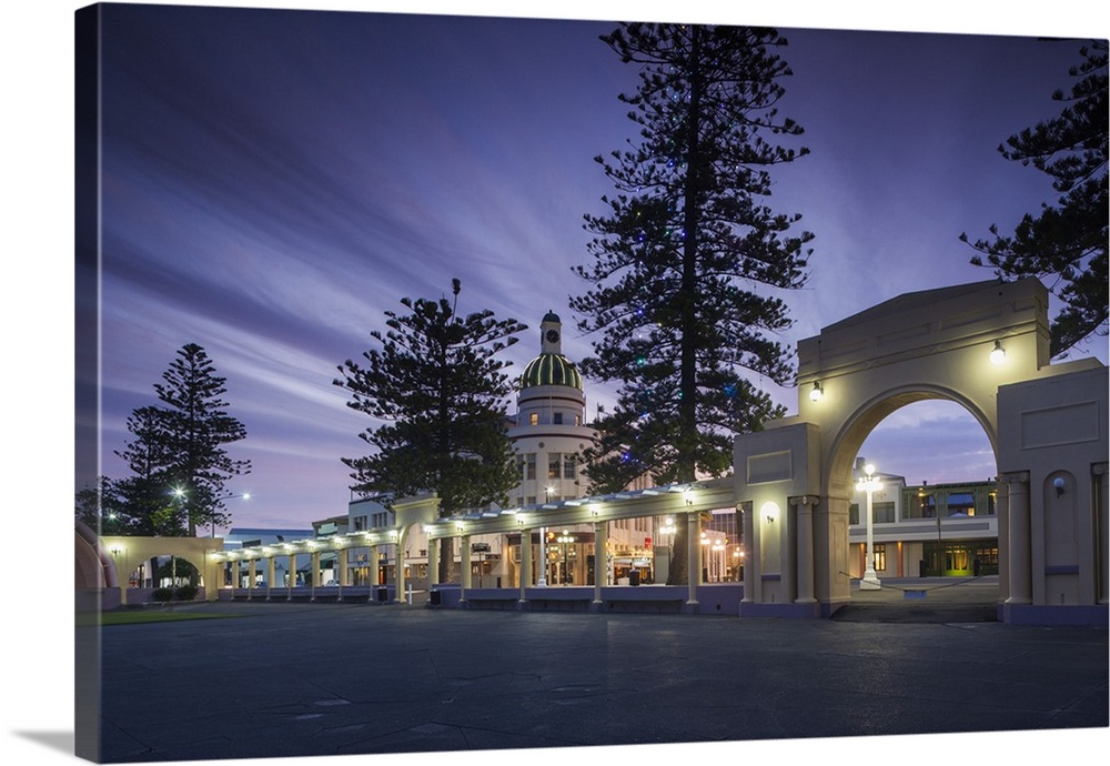 <p>New Zealand, North Island, Hawkes Bay, Napier, art-deco architecture, the TandG Building, 1936 and the Marine Parade, dusk.</p>