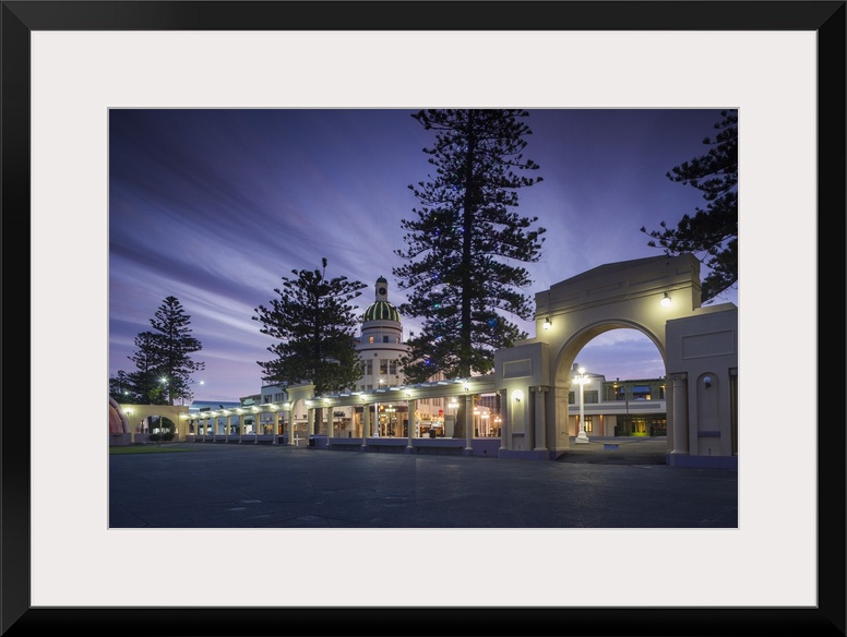 <p>New Zealand, North Island, Hawkes Bay, Napier, art-deco architecture, the TandG Building, 1936 and the Marine Parade, dusk.</p>