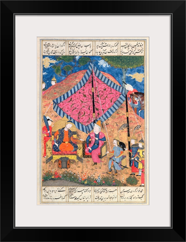 <p>Ms D-184 fol.203a The Tent of the Persian Army, illustration from the 'Shahnama' (Book of Kings), by Abu'l-Qasim Manur Firdawsi (c.934-c.1020) c.1510-40 (gouache on paper) by Persian School, (16th century); Institute of Oriental Studies, St. Petersburg, Russia</p>