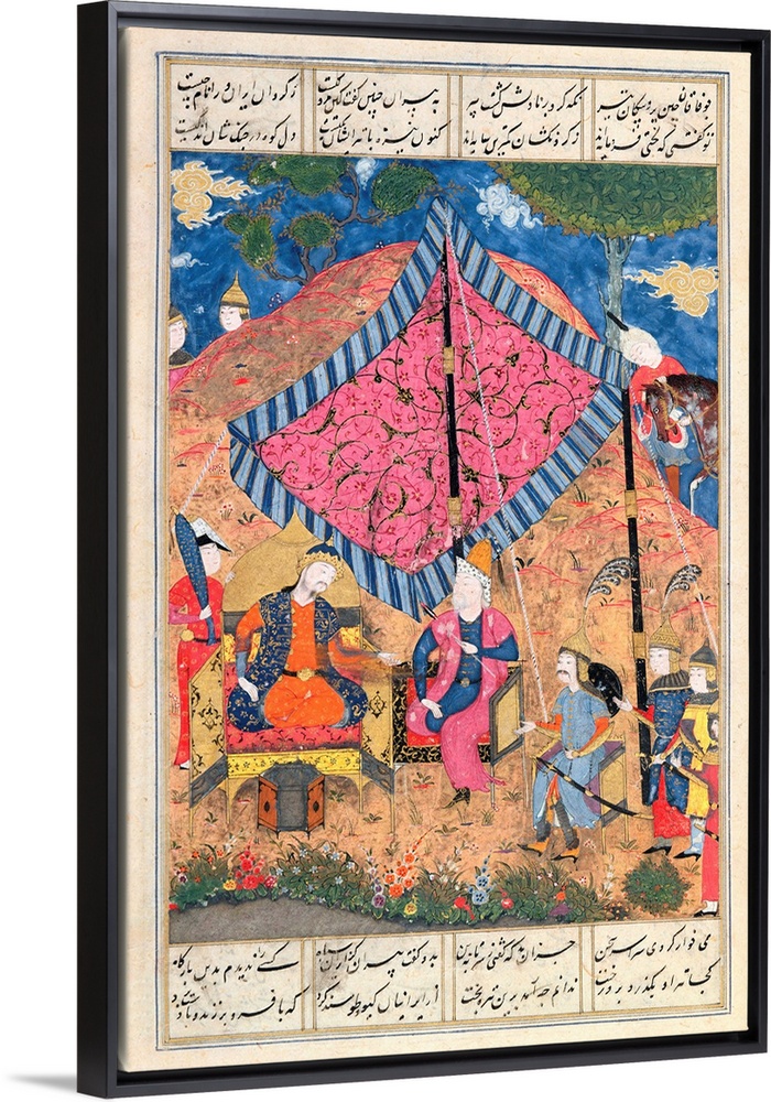 <p>Ms D-184 fol.203a The Tent of the Persian Army, illustration from the 'Shahnama' (Book of Kings), by Abu'l-Qasim Manur Firdawsi (c.934-c.1020) c.1510-40 (gouache on paper) by Persian School, (16th century); Institute of Oriental Studies, St. Petersburg, Russia</p>