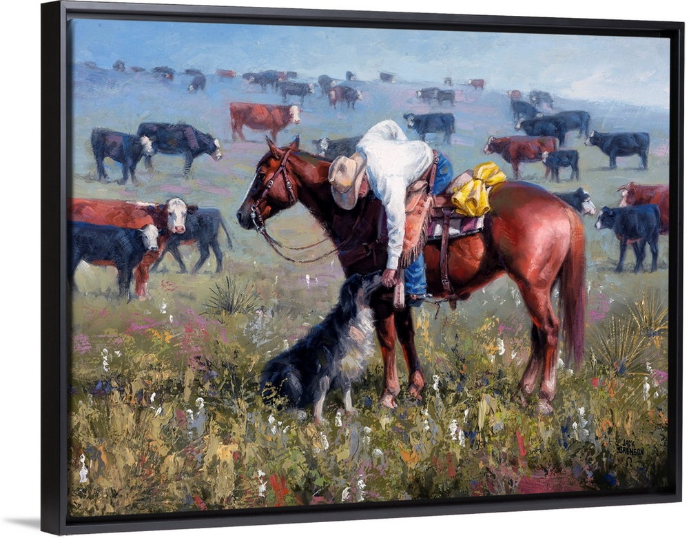 <p>Jack Sorenson’s art celebrates the Old West lifestyle and cowboy culture. He came of age on a dude ranch on the rim of Palo Duro Canyon. He worked as a stagecoach driver, horse trainer, and performance gunfighter before turning his attention to art. Sorenson has been a naturally gifted artist since he was a child and has been voted into the prestigious Cowboy Artists of America group. Sorenson’s paintings often feature horses and scenic landscapes of the Wild West.</p>