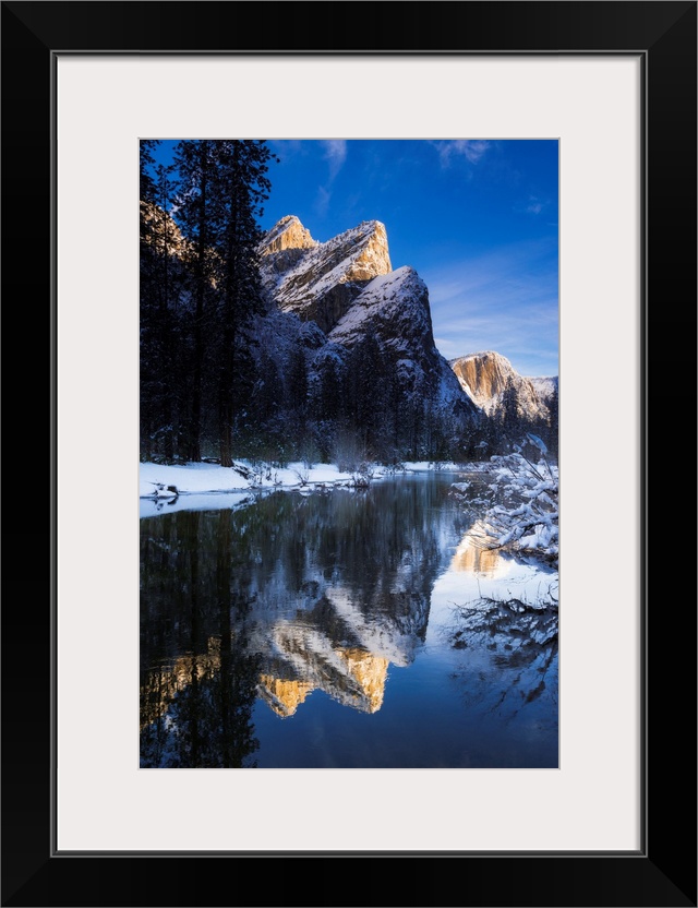 <p>The Three Brothers above the Merced River in winter, Yosemite National Park, California USA.</p>
