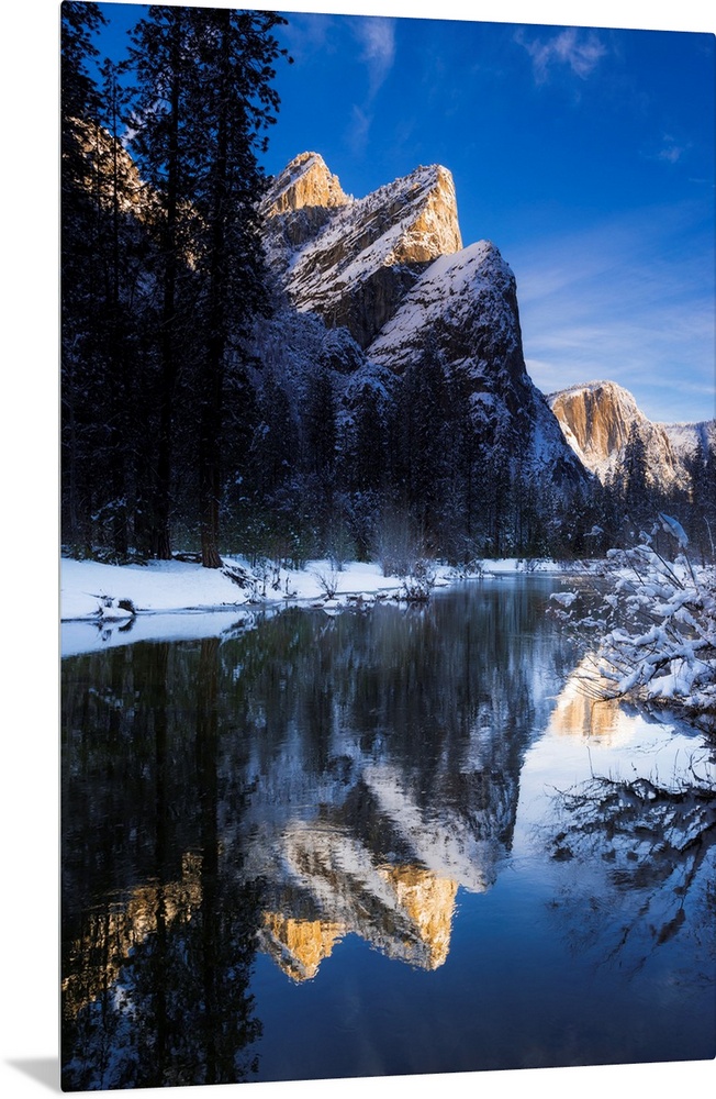 <p>The Three Brothers above the Merced River in winter, Yosemite National Park, California USA.</p>