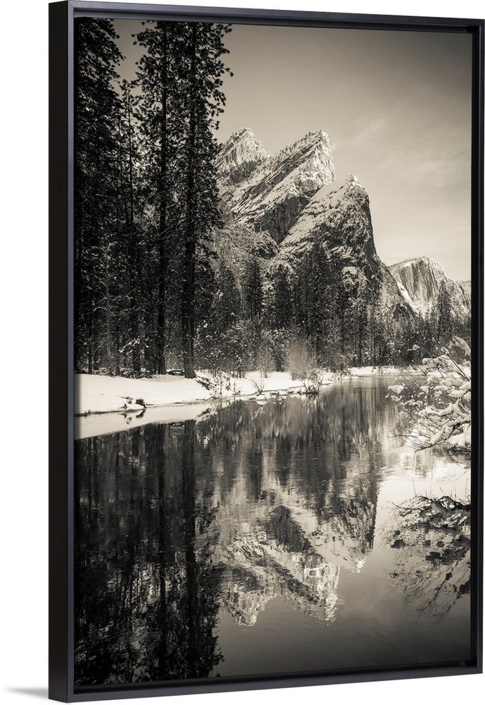 <p>The Three Brothers above the Merced River in winter, Yosemite National Park, California USA.</p>