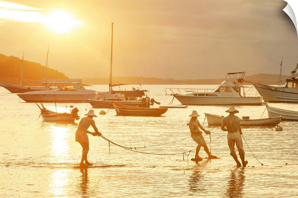 Landscapes Harbor Seascapes Sunset Photography South America Brazil Fishing Transportation Boat Yellow Wall Art