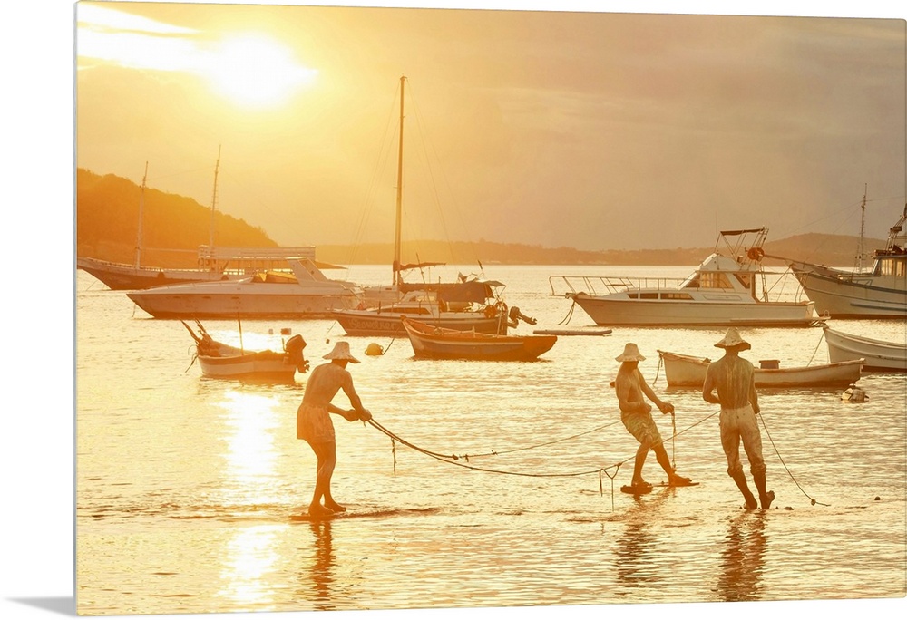 Landscapes Harbor Seascapes Sunset Photography South America Brazil Fishing Transportation Boat Yellow Wall Art