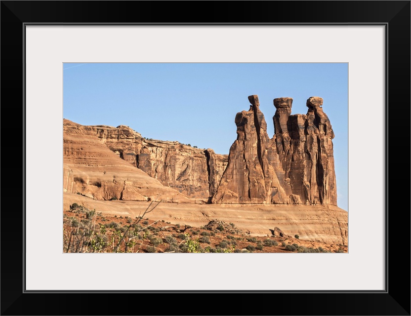 <p>The Three Gossips, sandstone formation in the Courthouse Towers area of Arches National Park, Moab, Utah.</p>