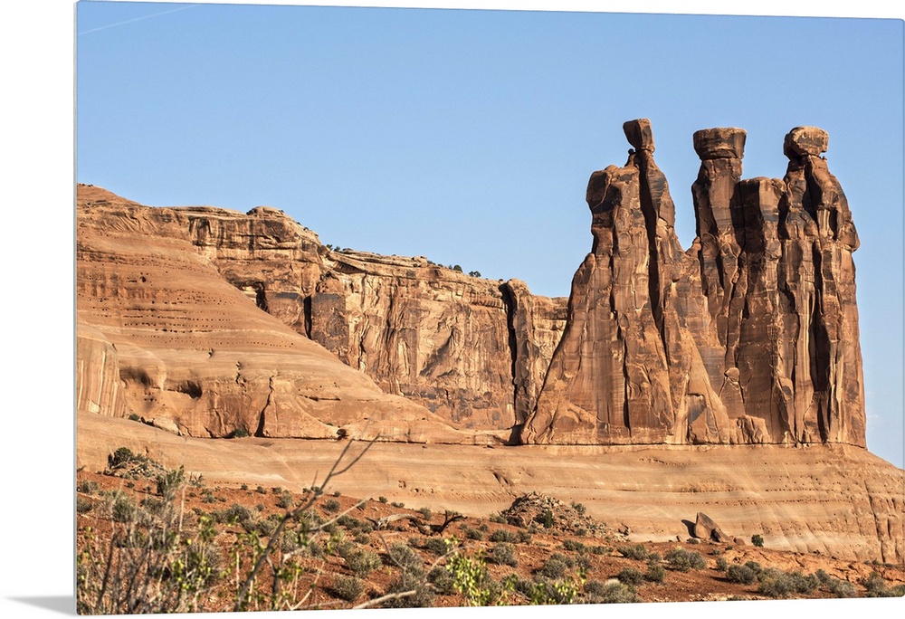 <p>The Three Gossips, sandstone formation in the Courthouse Towers area of Arches National Park, Moab, Utah.</p>