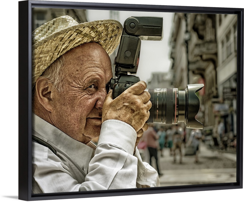 <p>Portrait of an elderly man taking a photo with a large camera, Budapest, Hungary.</p>