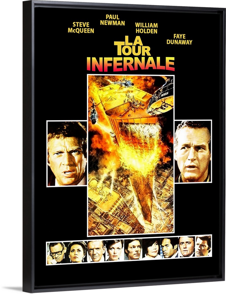 <p>The Towering Inferno, (aka La Tour Infernale), Top L-R: Steve Mcqueen, Paul Newman, Bottom L-R: William Holden, Faye Dunaway, Fred Astaire, Susan Blakely, Richard Chamberlain, Jennifer Jones, O.J. Simpson, Robert Vaughn, Robert Wagner On French Poster Art, 1974.</p>