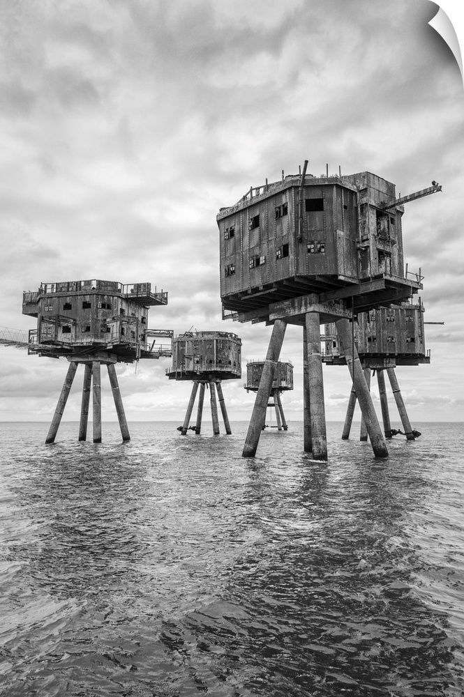 <p>The towers of the Red Sands Fort are part of the decommissioned Maunsell Forts, the armed towers built in the Thames estuary to protect the Kent coast during the Second World War, near Whitstable, Kent, England.</p>