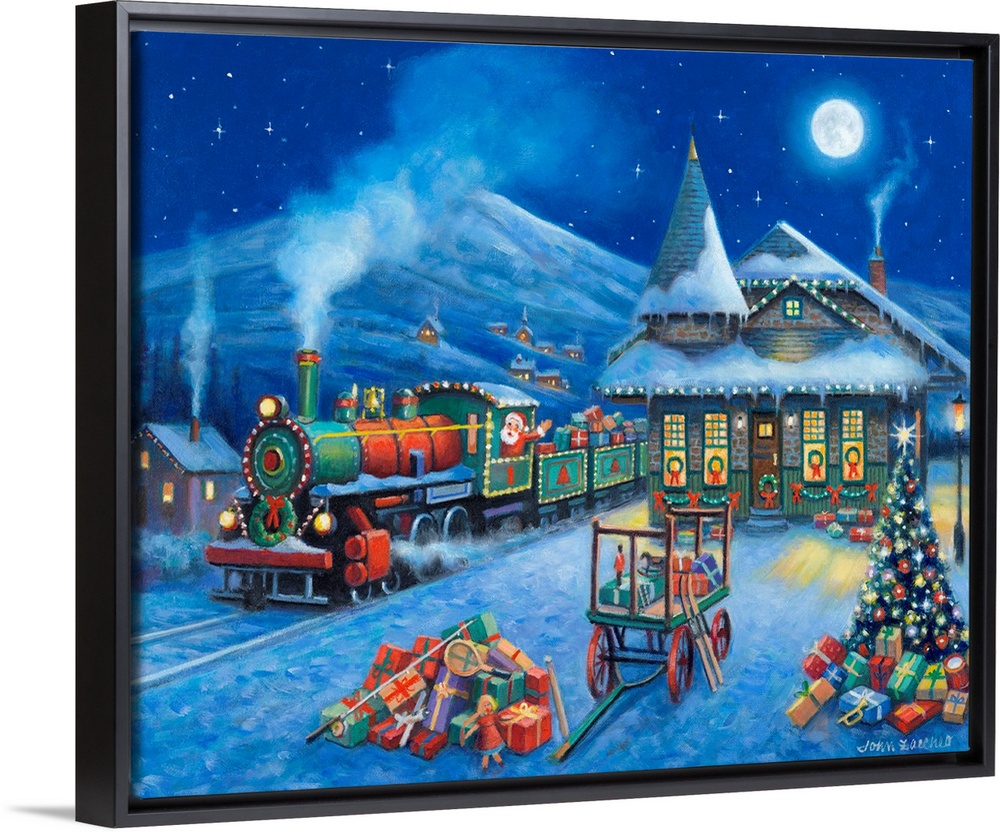 Art Blue Wall Art Contemporary Art Holidays Christmas Landscapes Snowscapes Painting Transportation Train John Zaccheo