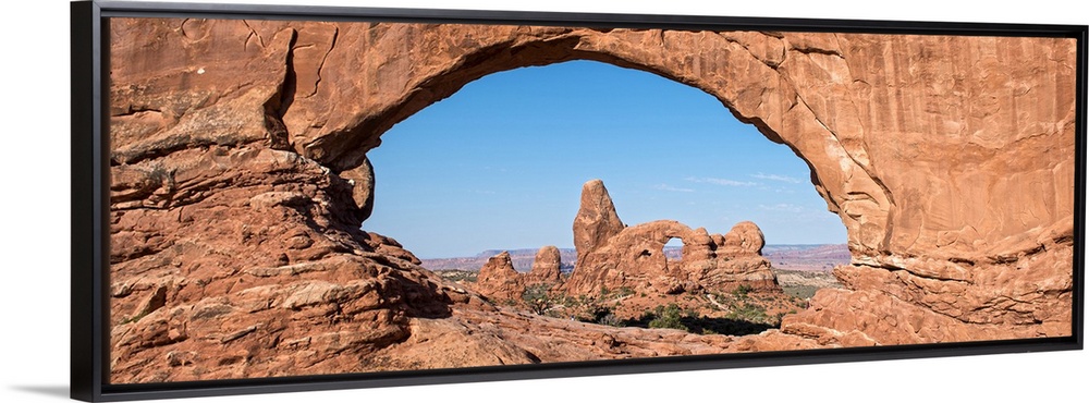 <p>The Turret Arch seen through the North Window Arch, on Windows hiking trail, Arches national Park, Moab, Utah.</p>