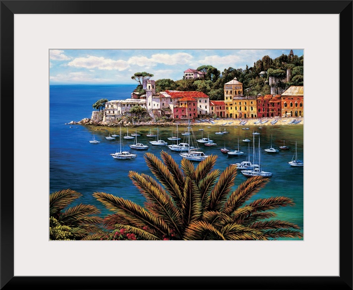 <p>Contemporary painting with a view of the village, boats, and water on the Tuscan coast.</p>