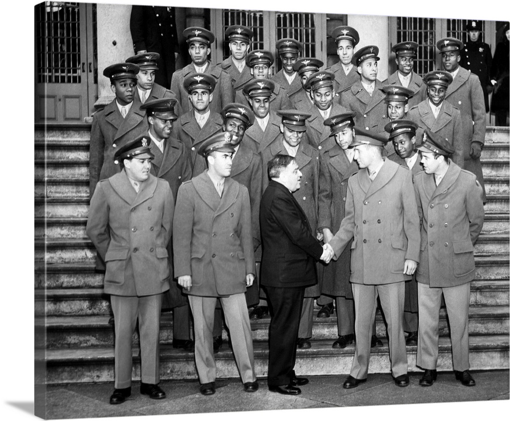 <p>The United States' first Negro Navigation Cadets being congratulated by New York City Mayor at the NY City Hall.</p>