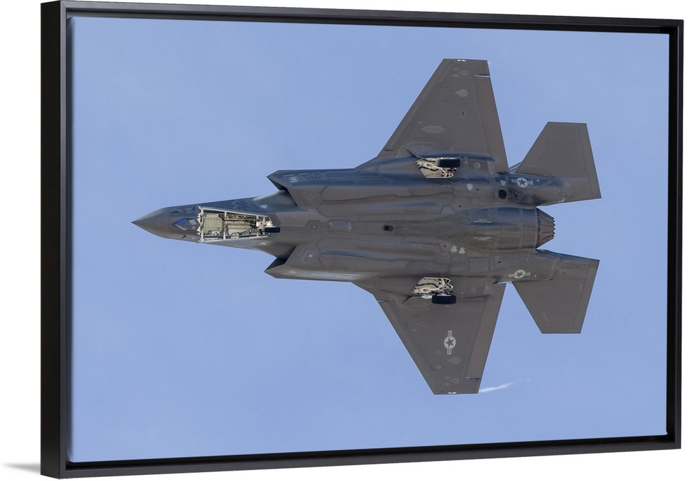 <p>The underside of a U.S. Air Force F-35A Lightning II as it turns on to final approach at Nellis Air Force Base, Nevada.</p>