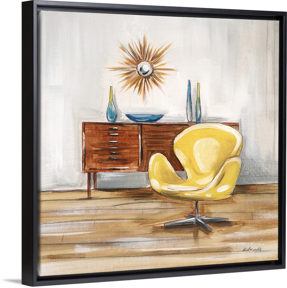 <p>Contemporary artwork of a stylish chair in a home with mid century decor.</p>