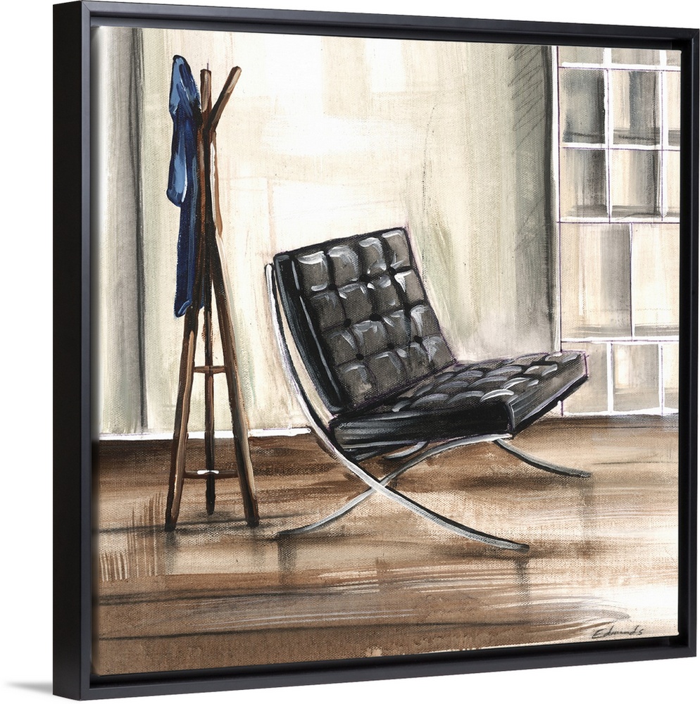 <p>Contemporary artwork of a stylish chair in a home with mid century decor.</p>