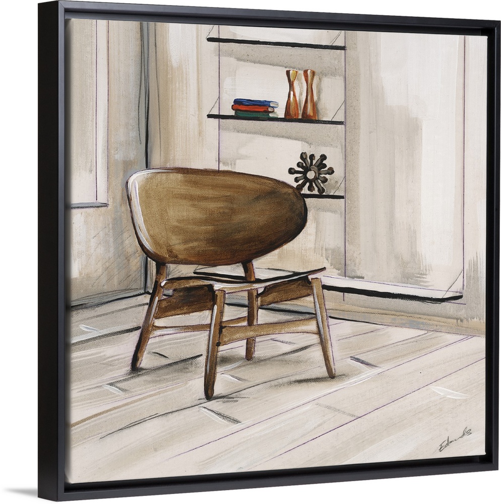 <p>Contemporary artwork of a stylish chair in a home with mid century decor.</p>