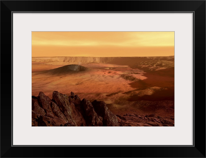 <p>The view from the rim of the caldera of Olympus Mons on Mars, the largest volcano in the solar system.</p>