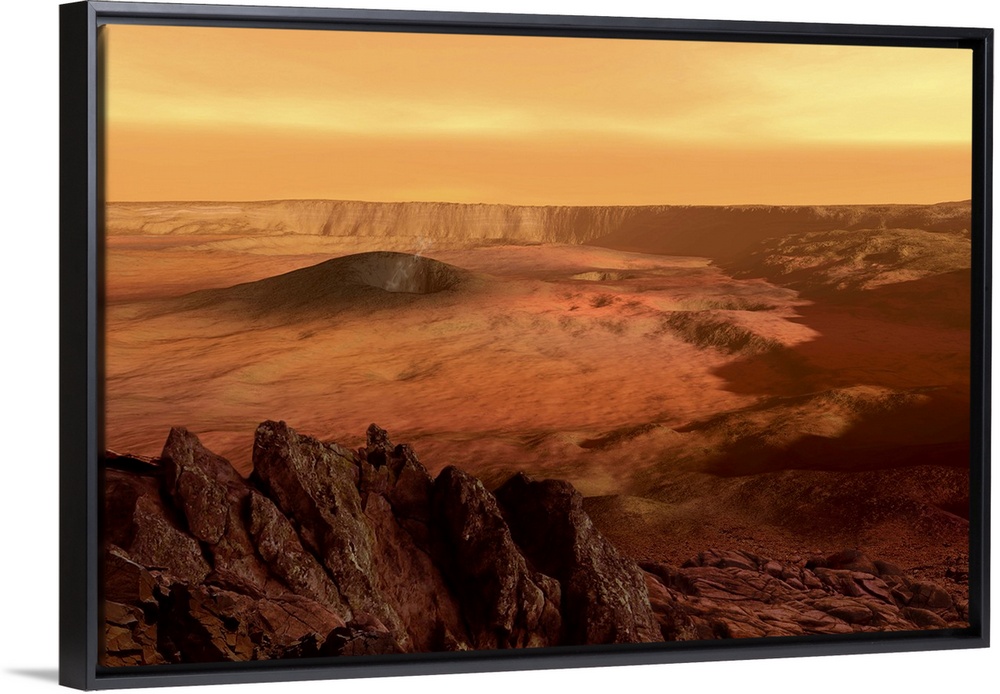 <p>The view from the rim of the caldera of Olympus Mons on Mars, the largest volcano in the solar system.</p>