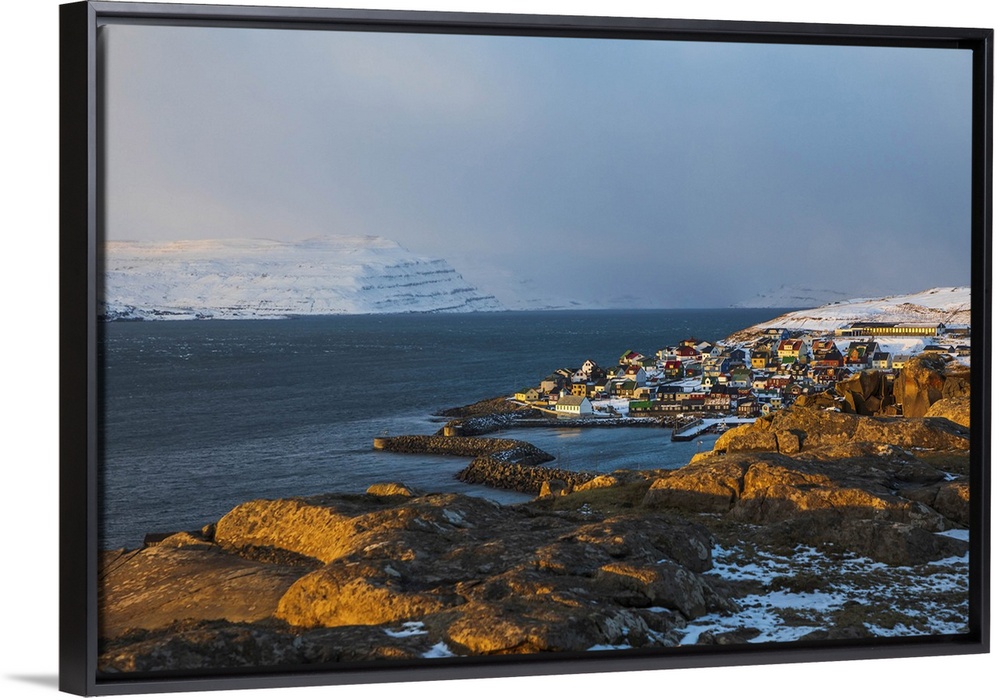 <p>The village of Nolsoy covered by snow, Nolsoy, Faroe Islands</p>