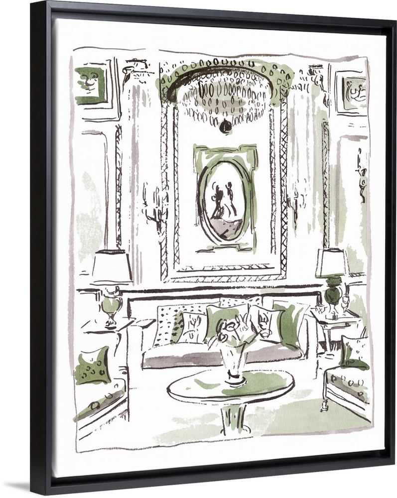 Architecture Interiors Art GrandMillennial Decorative Art Drawing Green Wall Art Illustrations Painting Melissa Wang Watercolor