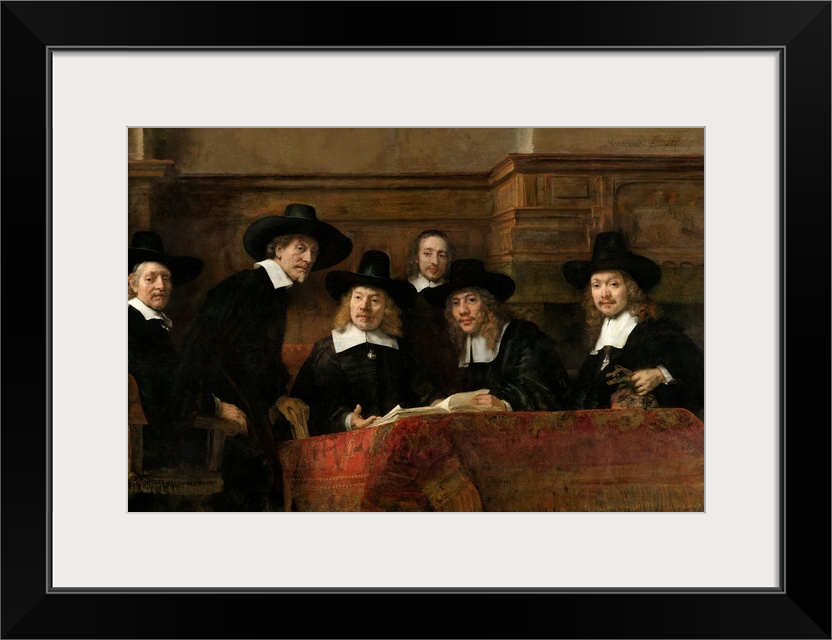 <p>Painting by Rembrandt of the Wardens of the Amsterdam Drapers' Guild, Known as The Syndic.</p>