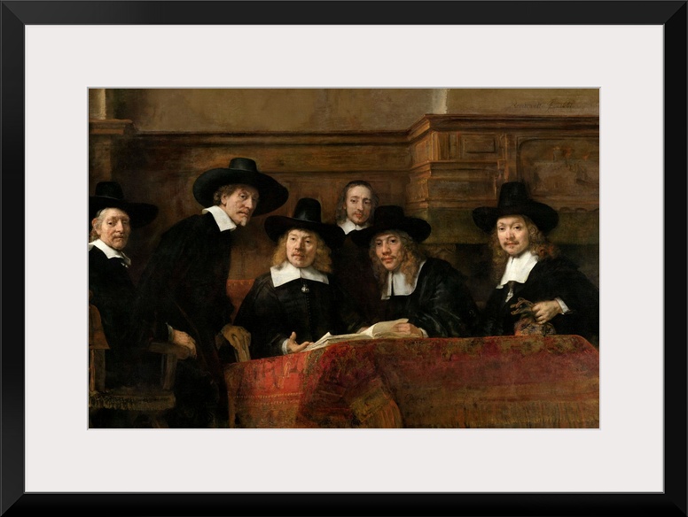 <p>Painting by Rembrandt of the Wardens of the Amsterdam Drapers' Guild, Known as The Syndic.</p>
