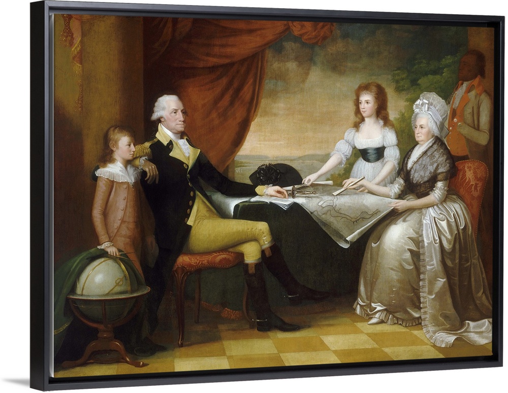 <p>The Washington Family, by Edward Savage, c.1789-96, American painting, oil on canvas. Savage's created this monumental family portrait from life sittings of America's first 'First Family' after the Washington's posed for studies in New York City in 1789-9</p>