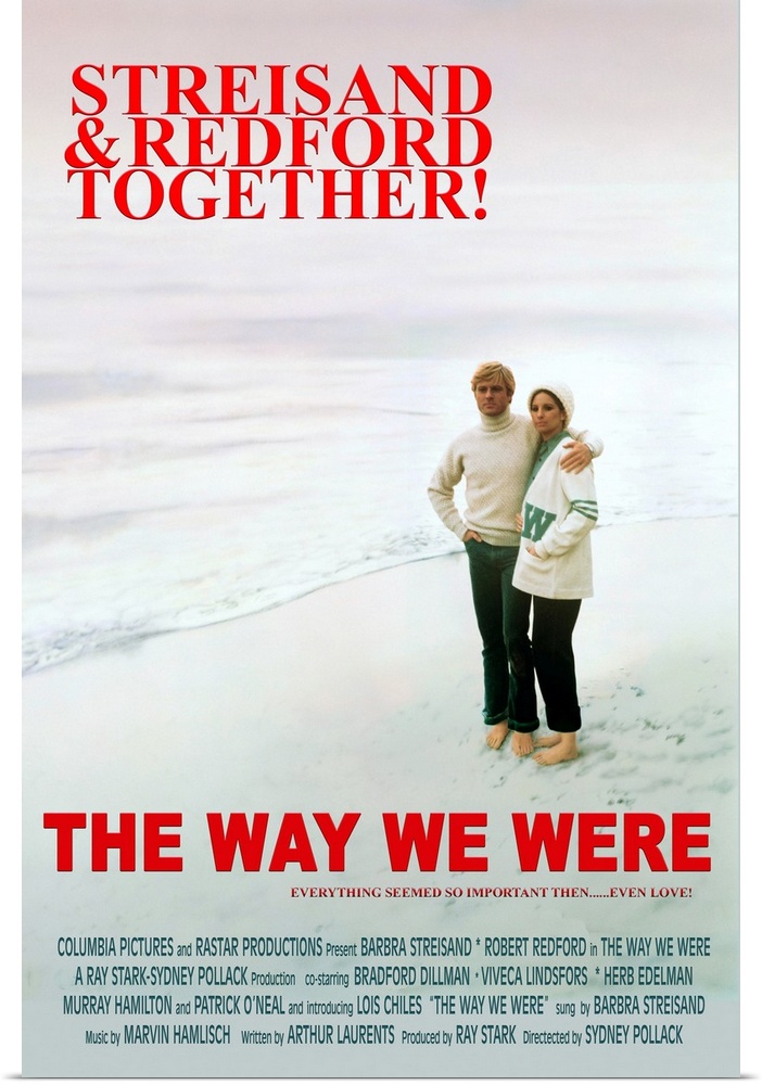 <p>THE WAY WE WERE, l-r: Robert Redford, Barbra Streisand on poster art, 1973.</p>