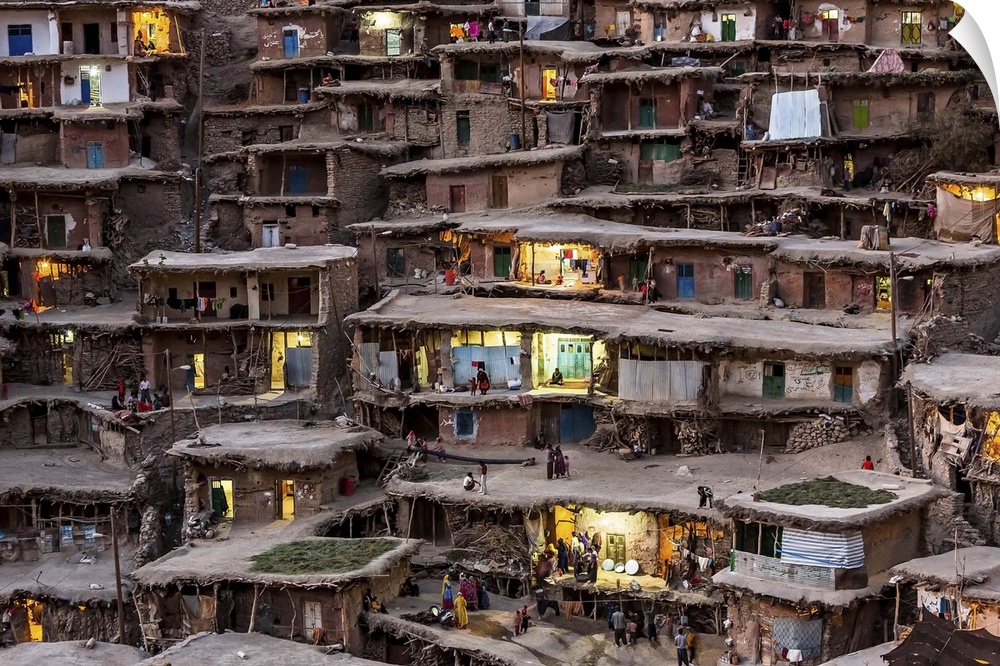 <p>Homes in a village in Iran built into the side of a slope.</p>