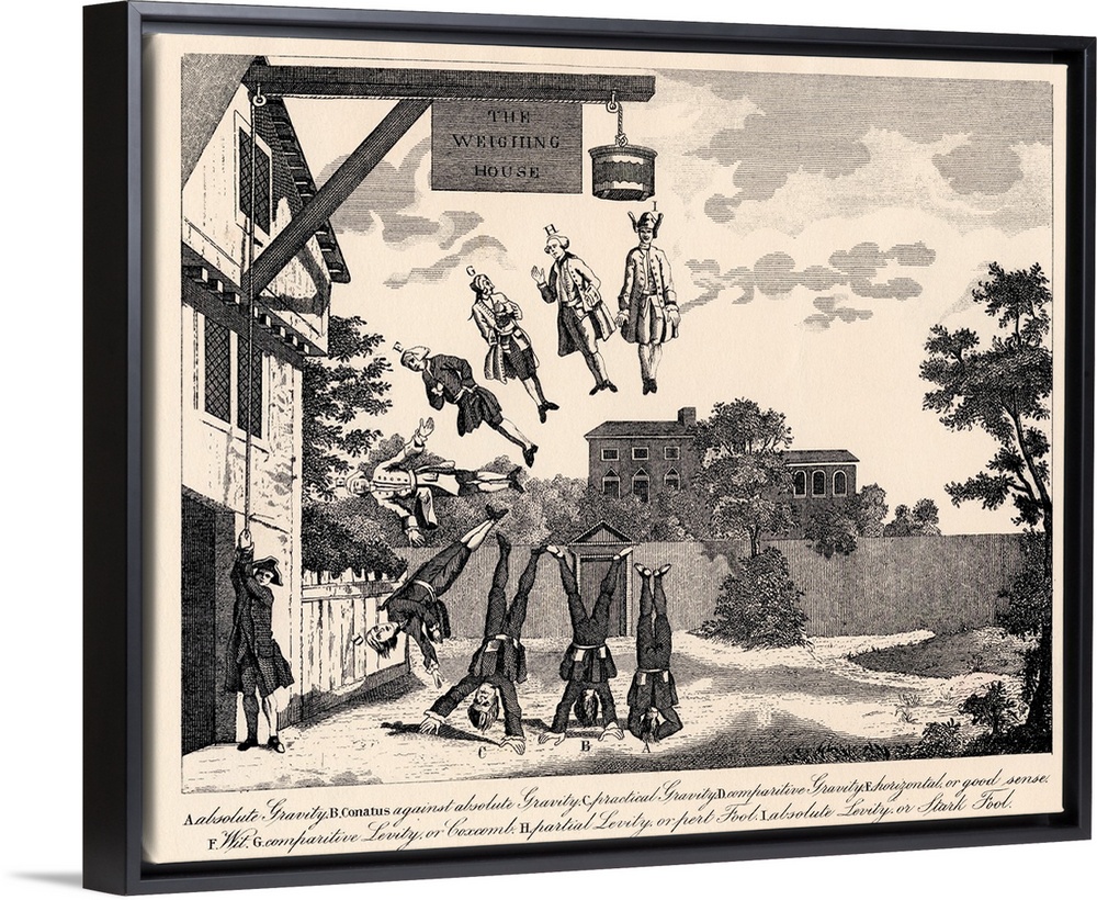 <p>The Weighing House By William Hogarth. Weighing The Degrees Of Dumbness And Foolishness. Text Below Says: "A. Absolute Gravity. B. Conatus Against Absolute Gravity. C. Practical Gravity. D. Comparative Gravity. E. Horizontal, Or Good Sense. F. Wit. G. Comparative Levity, Or Coxcomb. H. Partial Levity, Or Pert Fool. I. Absolute Levity, Or Stark Fool."</p>
